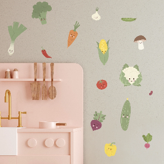 Cute, colorful, and full of personality! Our peel-and-stick vegetable wall decals brighten any room and make learning about veggies fun for kids.